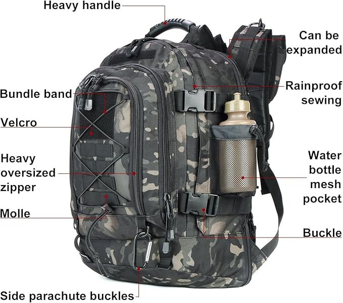 - ✅ Appeal: You can use this amazing backpack every day for travel or a military tactical assault rucksack. It is completely versatile for any backpack situation. You will love having so many different places to put all your stuff to keep it all separated. It even has a hydration compartment.