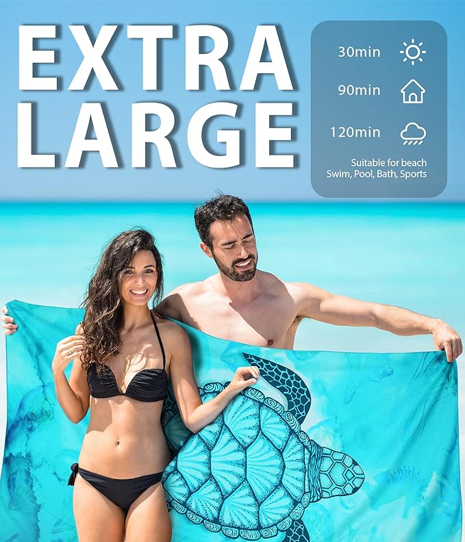 - ☀️[ Microfiber Lightweight ] High quality microfiber that absorbs water much faster than ordinary fabric! Eco-friendly, no faded and no smell. You can easily take it portable to avoid wet and cold on the beach. Perfect size for adults or kids.