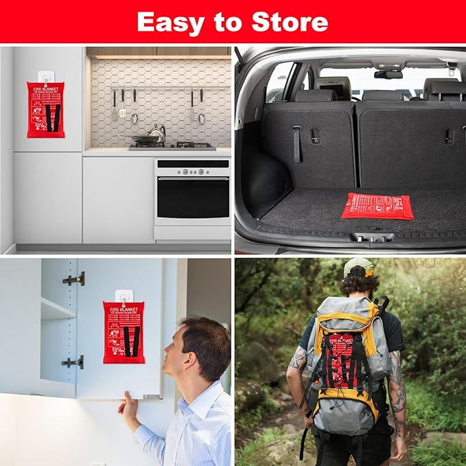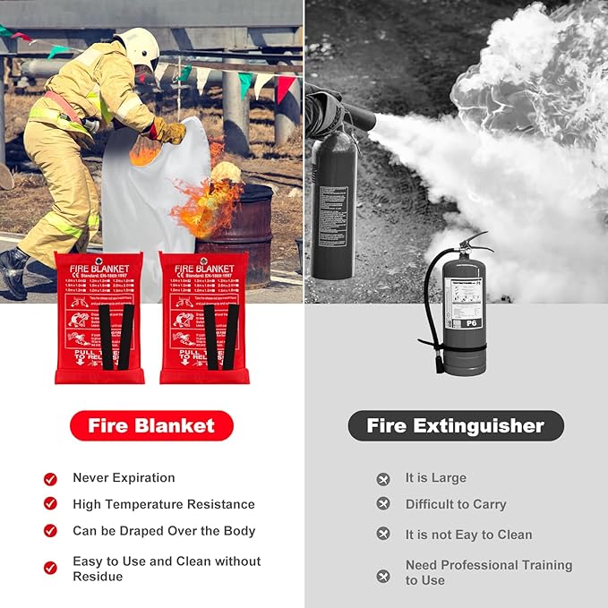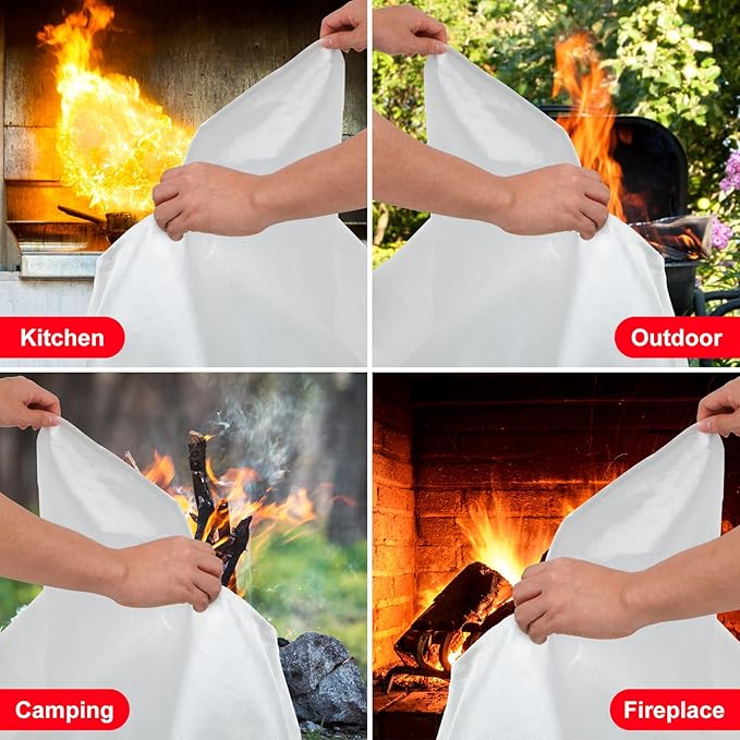 - Fire Blankets for Home and Kitchen - The fire blanket is designed as an essential home safety fire blanket in emergency. Fiberglass fire blanket can cut off oxygen and help people in a sudden fire. The flexible flame-retardant fiberglass blanket can be wrapped around a person or thrown over a fire to smother flames. Which is great for safety in kitchen, fireplace, grill, home, boats, cars, camping, welding, office. The fire blankets emergency for home can be used to extinguish fires or escape in an emergency.