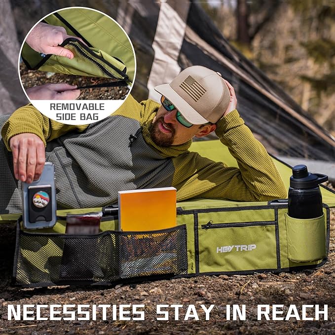 - Heytrip camping cot: Not just for car camping, take it fishing, to the beach, on a hiking and road tripping is a breeze with this backpacking cot. Bring it inside for a quick office nap or as a guest bed for family gatherings. With enough space for adults, kids or pets. Upgrade to Heytrip and experience the ultimate in versatility.
