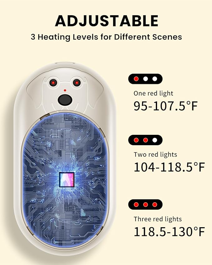 - 【3 Levels of Adjustable Temperature】rechargeable hand warmer can quickly heat to 130°F in 3 seconds and provide up to 20 hrs of heating time, which is suitable for the heat therapy needs of patient