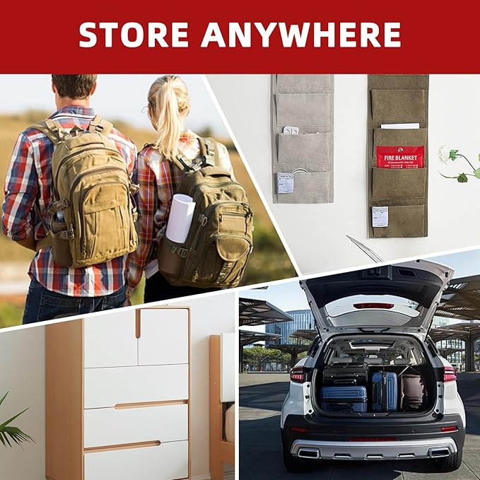 - EMERGENCY FIRE BLANKETS FOR HOME AND KITCHEN SAFETY: Fire emergency blankets are made of two layers of intricately woven glass fiber fabric and an inner layer that's made of fire-retardant film. Fire blankets work very effectively by cutting off the supply of oxygen (which the fire needs to burn) and smothering the fire. Fiberglass fire blanket for people protection while camping or cooking in kitchen, home, grill, smoker, boat, or car.