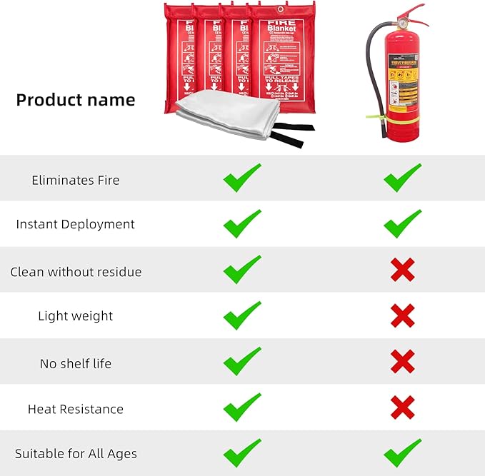 - NO MESS IN KITCHEN AND DOES NOT EXPIRE: In contrast to fire extinguishers, the fire blanket can still keep the place tidy after extinguishing a fire. Unlike traditional fire extinguishers, fire blankets never expire.