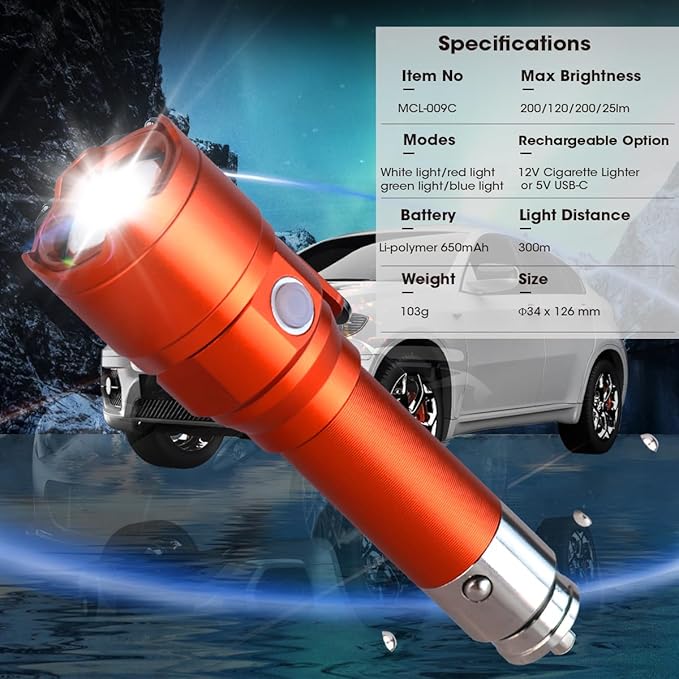 - [Escape tool] With the glass breaker and belt cutter, can quickly react in the case of emergency.