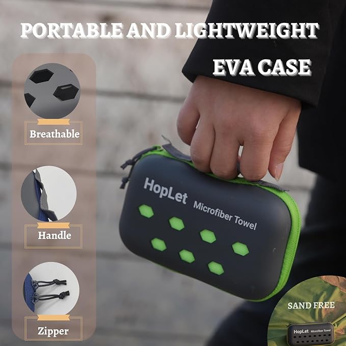 - 【Portable EVA Case】Each microfiber towel comes with a lightweight EVA storage box. This box is not only convenient to carry and pack, but also protects the towels from being contaminated during transportation. The size of the storage box perfect matches the size of the towel, and the microfiber towel is compact to put into the case, so you can easily fit it into your backpack or luggage. It's odor free and water proof. Outdoor activities and vacation traveling must haves.