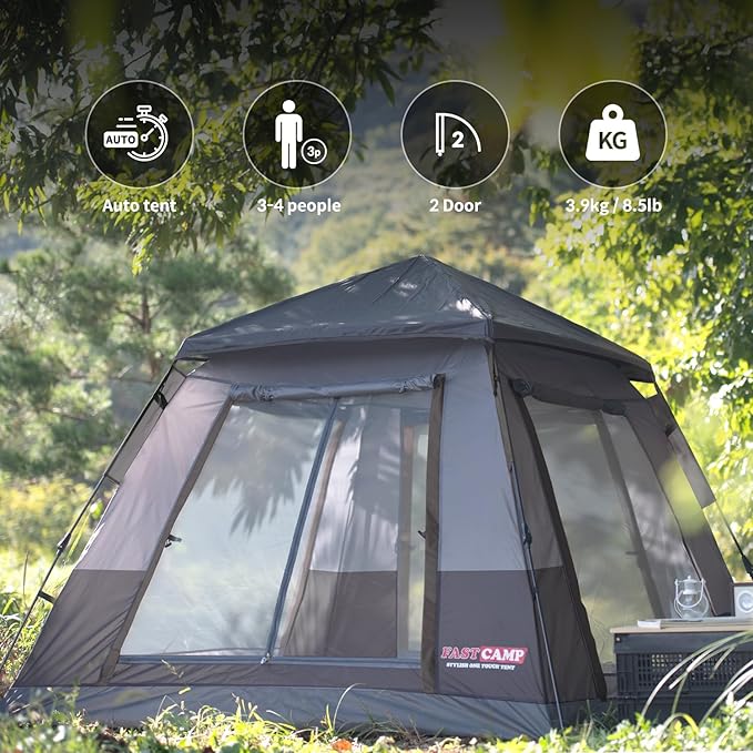 - 😉【Distinct Ventilation with Dual Doors & Mesh Windows】The pop up tent boasts a unique double-door design that combines ventilation and weather protection, ensuring privacy and a breathable, comfortable living space throughout your journey. The mesh windows offer excellent airflow while keeping insects at bay. With the rainfly removed, you can enjoy stunning views of the starry sky.