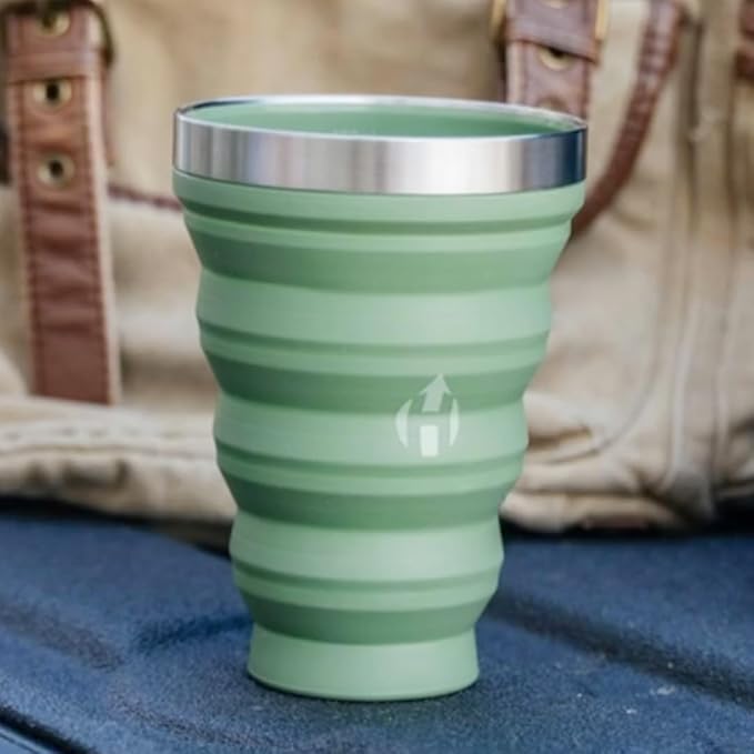 - Ultimate Durability - Built for years of fun, all large collapsible cups for camping are made from high-quality stainless steel and resilient silicone. Plus, the glossy interior repels gunk & stains and is suitable for easy cleaning in the dishwasher