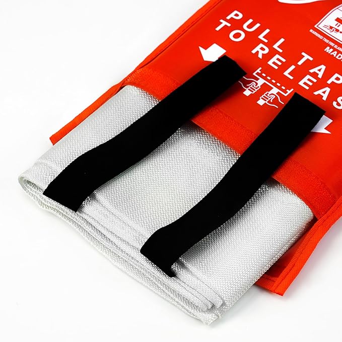 - 【EASY TO USE】: In the event of a fire, pull out the fire extinguishing blanket by holding the black tapes in your hand, place the emergency fire blanket over the flames, turn off the heat source, and when the burning object is extinguished and the emergency fire blanket has cooled down, check its condition; if it is undamaged, you can clean it and use it again. If it is damaged, dispose of it as non-combustible trash.