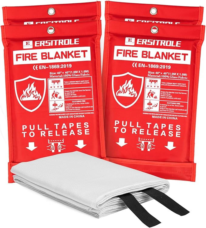 Fire Blanket 4 Pack, Fire Blankets Emergency for Home and Kitchen, 40" x 40" Flame Suppression Fiberglass Fire Blankets for Home Safety, Kitchen, and Camping