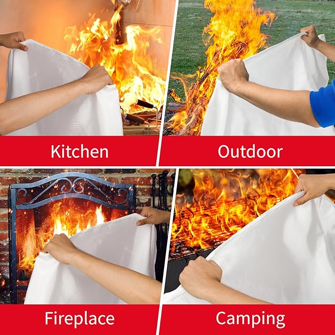 - 【WIDELY APPLICATION】: This is an essential home safety fire blanket for emergencies, which can be used for emergency use in homes, kitchens, hotels, entertainment venues, gas stations, car, offices, fireplace, grill, BBQ, camping, etc., and it's also perfect as a gift for friends and family.