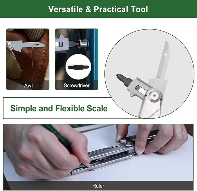 - 🛠【19 in 1 EDC MULTI TOOL】Boasting an impressive array of functions, this multitool encompasses needlenose pliers, regular pliers, wire cutters(soft, hard and standard wire cutters), scissors, pocket knife, files(metal&diamond-coated files), saw, can&bottle opener, phillips screwdriver, flathead screwdriver (SL5 & SL4.5), wire stripper, crowbar, awl and ruler. The multitool pliers is a great helper for repairs, easily tightening bolts, cutting wires, and fixing any other problems that arise.