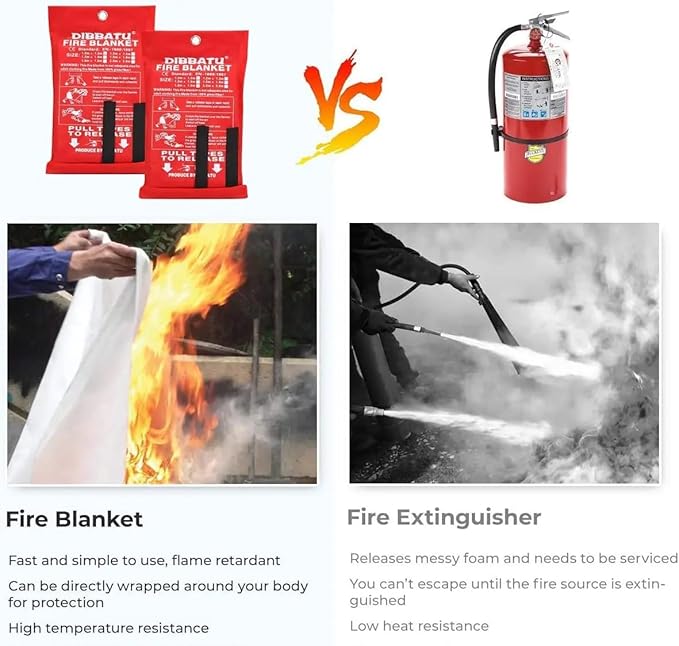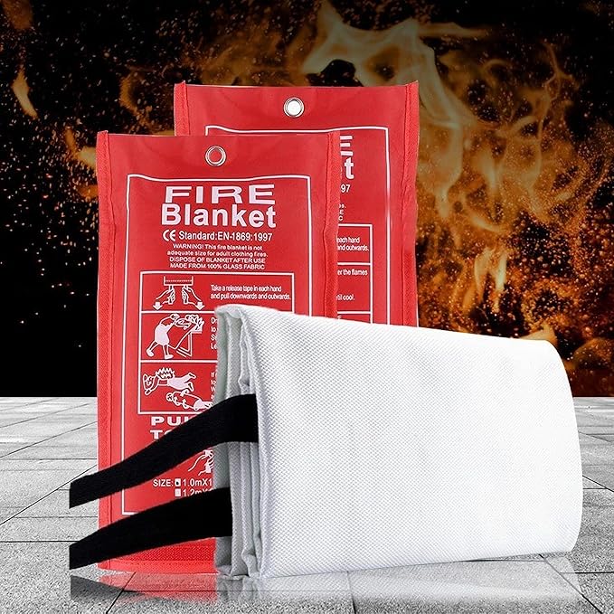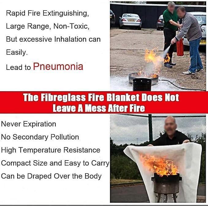 - 【FIREPROOF】Fire blankets are important fire safety equipment that can help put out small fires and prevent them from spreading. They are made of heat-resistant material fiberglass and are designed to extinguish fires outdoors or indoors (home, kitchen, car, camping).