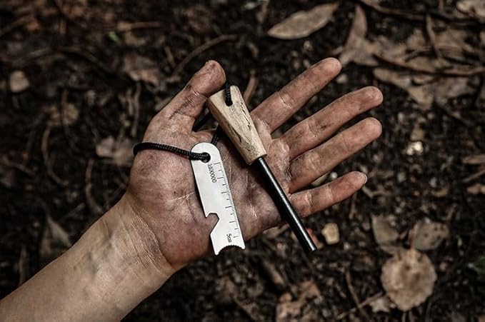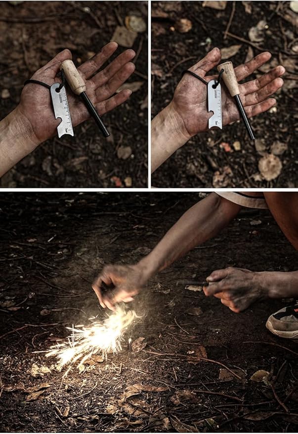 - The multifunctional fire starter kit can be used temporarily as a scale or a bottle opener, it is waterproof and you can still light a fire easily when the weather is humid.
