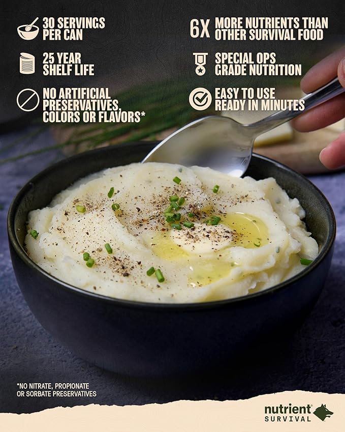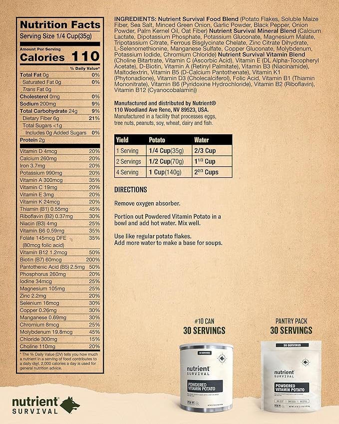 Nutrient Survival Potato Flakes, Powdered Vitamin Potato (30 Servings) for Mashed Potatoes, Soups, Emergency Food Supply & Camping Supplies, 38 Nutrients, Shelf Stable Up to 25 Years, One Can