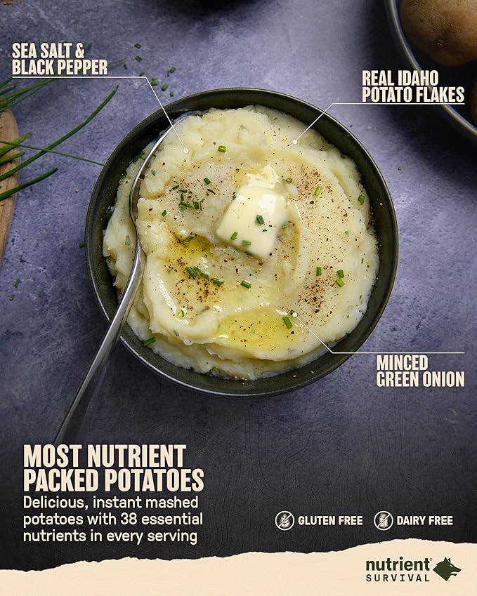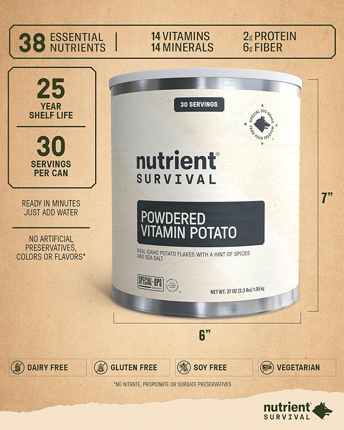 - FEED YOUR FREEDOM: Nutrient Survival Powdered Vitamin Potato - real Idaho potato flakes with a hint of spices & sea salt, is an essential emergency food supply. Just add water and make delicious potato dishes from mashed potatoes to hearty potato soups