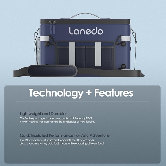- 【Convenient to Carry】: The LANEDO Cooler features a soft and comfortable shoulder strap, making it a breeze to transport whether you're headed to the beach, camping, or a tailgate party. Say goodbye to cumbersome coolers and hello to easy, hands-free carrying.