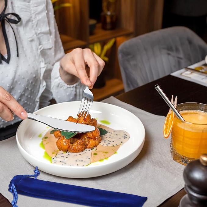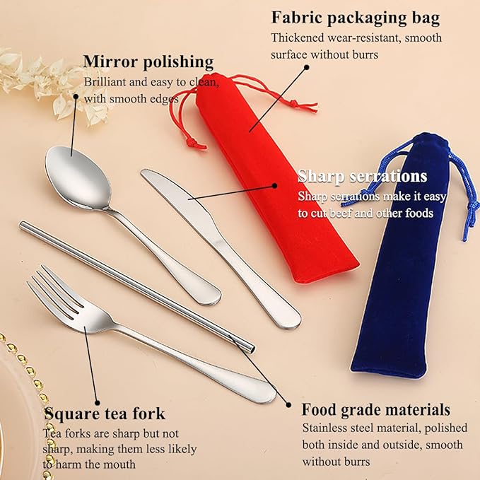 - Material safety: The cutlery set are made of high quality food grade stainless steel. Mirror finished surface and ergonomic shape, reusable and durable for daily use. Easy to clean, dishwasher safe.