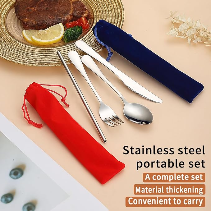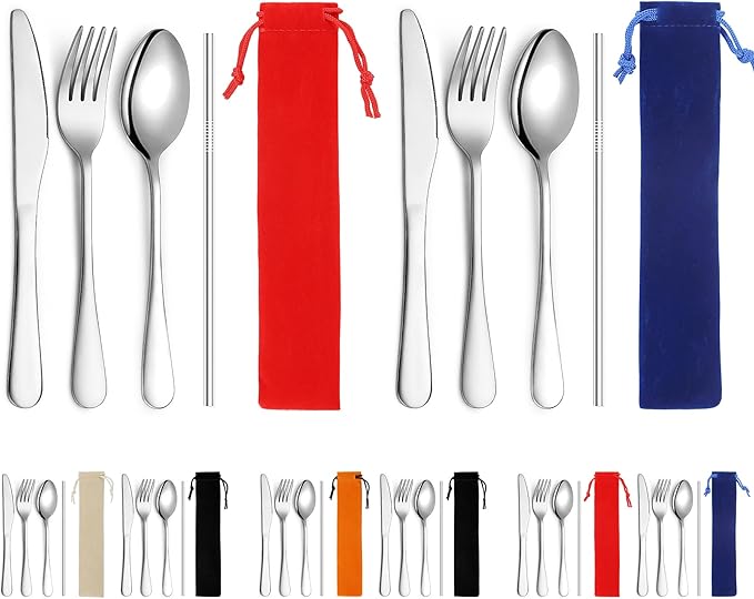 Kyraton Portable Flatware, Reusable Camping Flatware, Bento Box Flatware, Silverware For School/Work/Office/Outdoor, Dishwasher Safe, Set of 2 Packs
