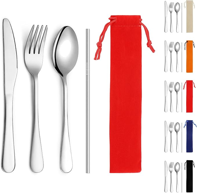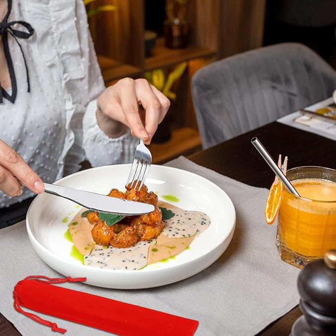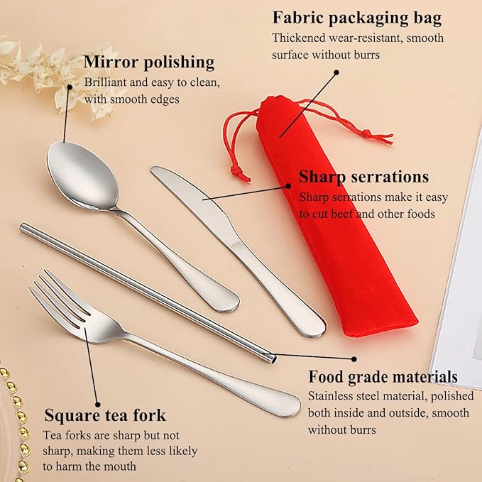 - Material safety: The cutlery set are made of high quality food grade stainless steel. Mirror finished surface and ergonomic shape, reusable and durable for daily use. Easy to clean, dishwasher safe.