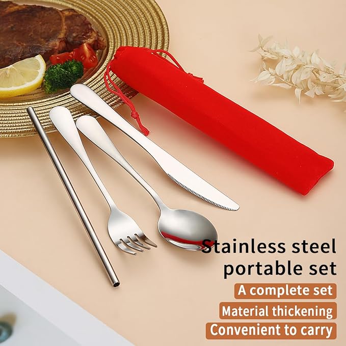 Kyraton Portable Flatware, Reusable Camping Flatware, Bento Box Flatware, Silverware For School/Work/Office/Outdoor, Dishwasher Safe, Set of 4 Pieces