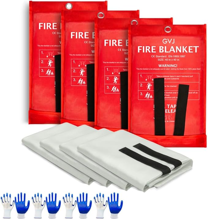 Fire Blanket,Emergency Fire Blanket for Home and Kitchen, Fiberglass Fire Extinguisher Blanket for Camping, Cars, 0ffices, Warehouses, Schools,Grill, Fireplaces (4)