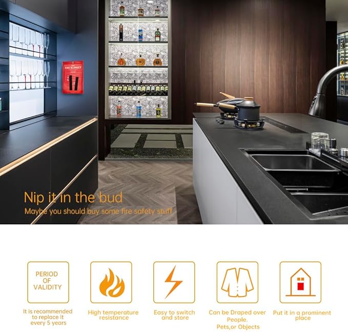 - 🔥Economic And Safe: Fire🔥 Extinguisher Blanket Won't Melt And It Won't Catch Fire。Non-toxic, Non-corrosive, Excellent Fire Extinguishing Effect. Ensure Safety And Reliability. You Can Rely On Fire Blankets To Solve Fire Hazards Quickly And Effectively. More Affordable Than Traditional Fire Extinguishers, A Wider Range Of Applications. It Is Not Only Suitable For Home Kitchens,Gas Stoves, Electrical Appliances And Other Small Fire Sources, But Also For Outdoor Camping, Barbecue, Bourism And Other Occasions. In A Variety Of Applications, Fire Blankets Can Provide You With Comprehensive Security Protection And Peace Of Mind In Critical Situations.