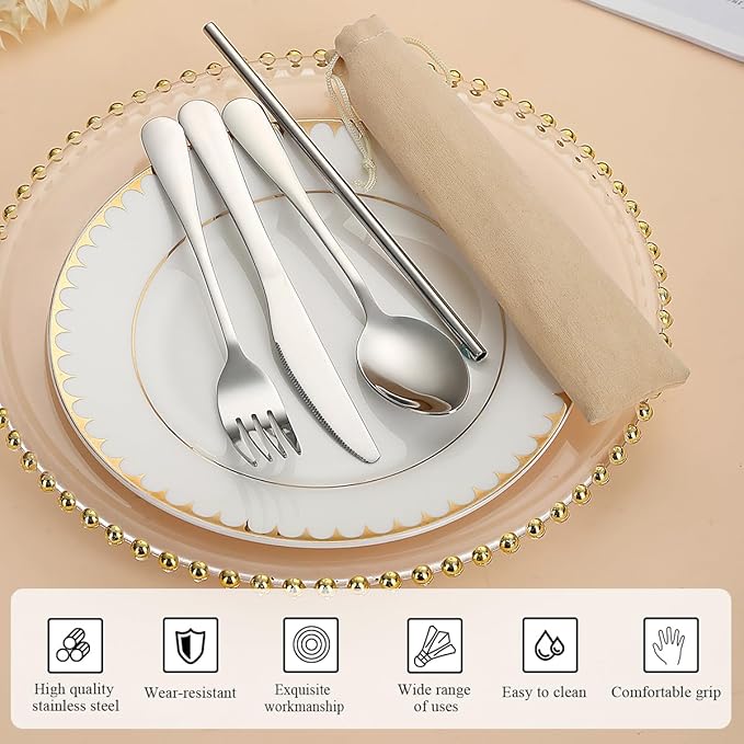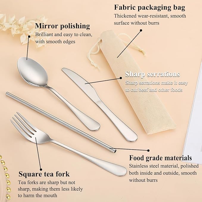- Material safety: The cutlery set are made of high quality food grade stainless steel. Mirror finished surface and ergonomic shape, reusable and durable for daily use. Easy to clean, dishwasher safe.