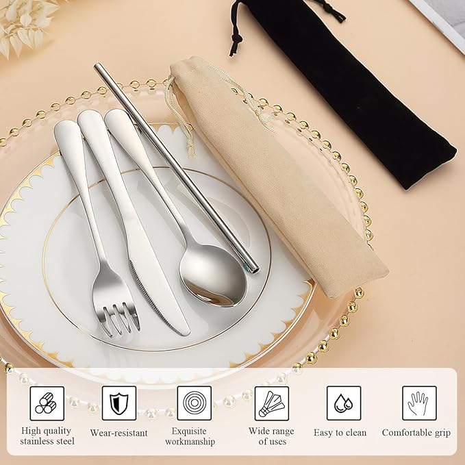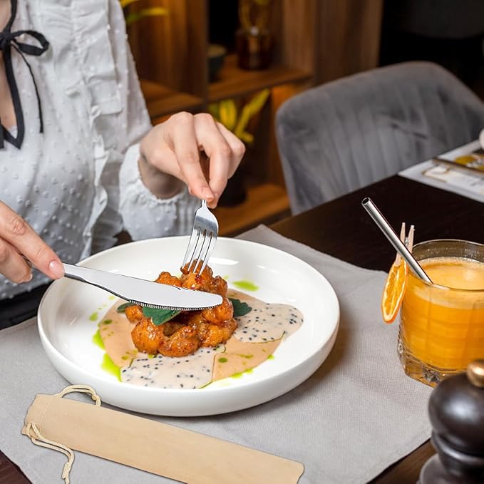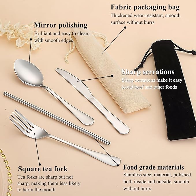 - Material safety: The cutlery set are made of high quality food grade stainless steel. Mirror finished surface and ergonomic shape, reusable and durable for daily use. Easy to clean, dishwasher safe.