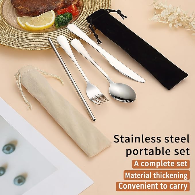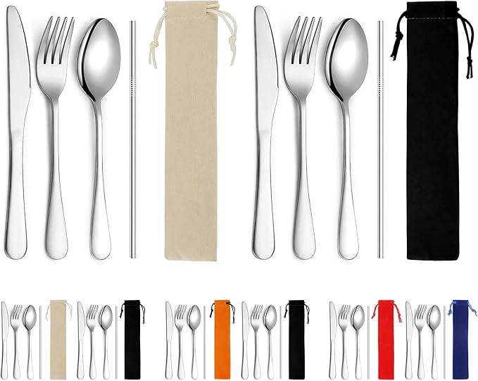 Kyraton Portable Flatware, Reusable Camping Flatware, Bento Box Flatware, Silverware For School/Work/Office/Outdoor, Dishwasher Safe, Set of 2 Packs