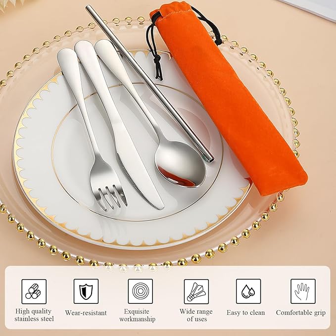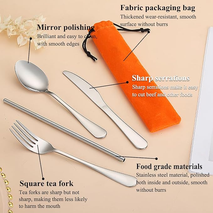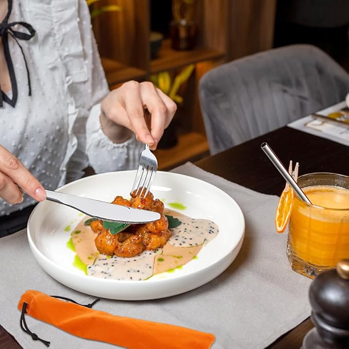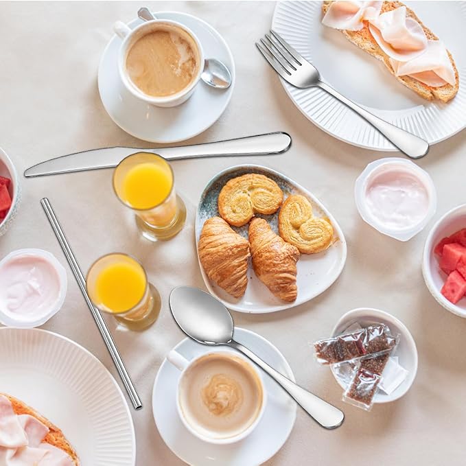 - Material safety: The cutlery set are made of high quality food grade stainless steel. Mirror finished surface and ergonomic shape, reusable and durable for daily use. Easy to clean, dishwasher safe.