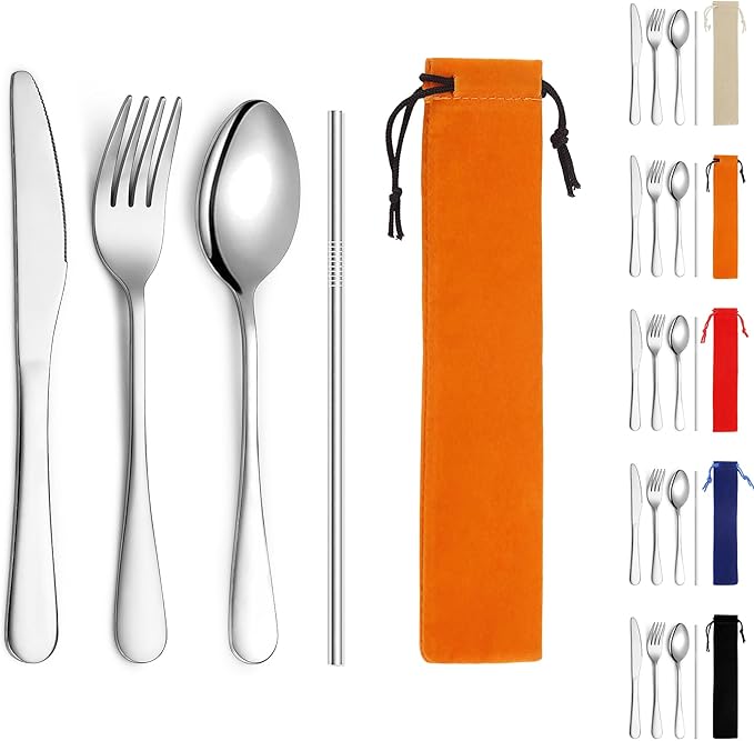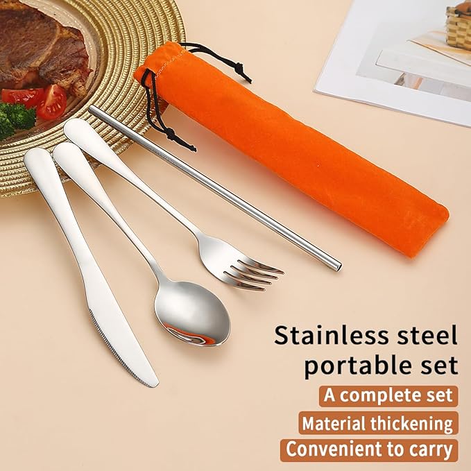 Kyraton Portable Flatware, Reusable Camping Flatware, Bento Box Flatware, Silverware For School/Work/Office/Outdoor, Dishwasher Safe, Set of 4 Pieces