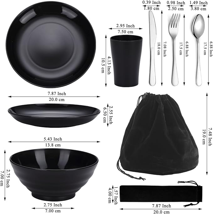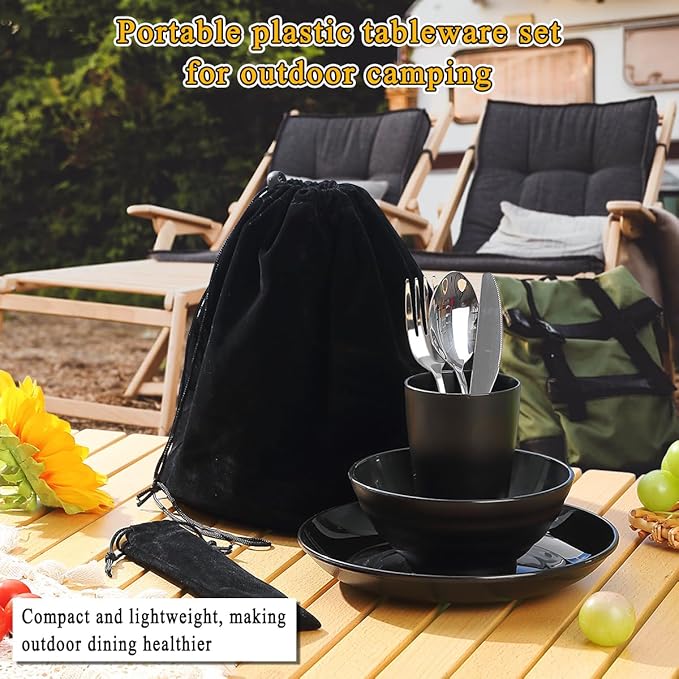 - HIGH QUALITY: The plates and cups of this camping set are made of pp material, BPA free, non-toxic and odourless. They are lightweight, unbreakable and sturdy, the stainless steel cutlery is made of high quality stainless steel, sturdy and durable.