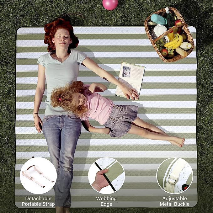 - 【Waterproof & Machine Washable】Outdoor picnic blanket is super easy to clean due to its durable and waterproof backing, easily shake & wipe off dirt, mud, wet grass, and beach sand. And you could put it into washing machine to save your time and free both hands.