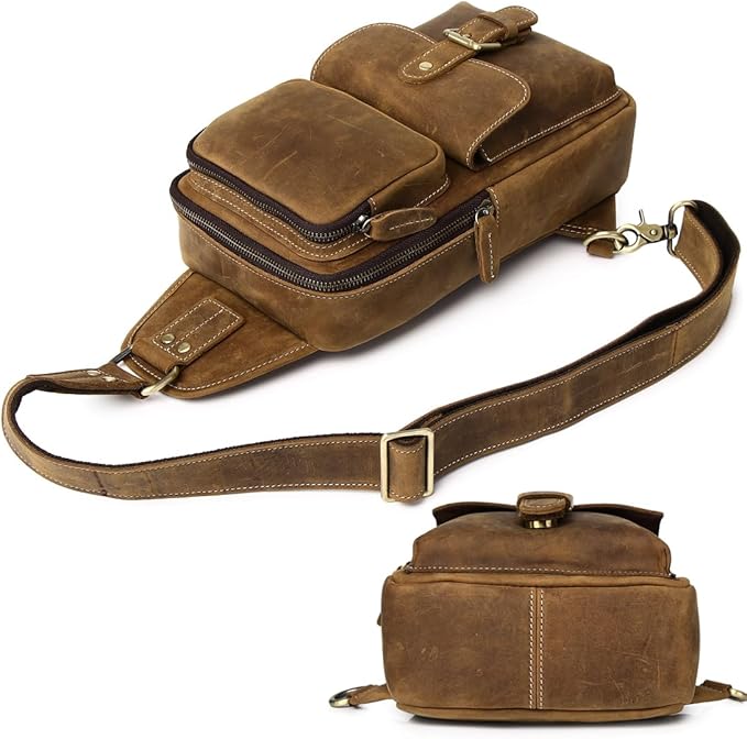 - 【Multipurpose use】: This stylish sling bag can used as a chest bag, single shoulder bag, crossbody backpack, shoulder backpack, Daypack, travel bag, business leather bag, outdoor bag, fit very well for adult men or women. perfect for outdoor, travel, vacation, camping, hunting, hiking, fishing, shopping, and work.Perfect Gift for Christmas, New Year, Thanks Giving Day, Groomsmen, Birthdays, Father's Day, Valentines Day, and other Special Occasion.