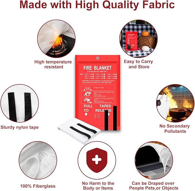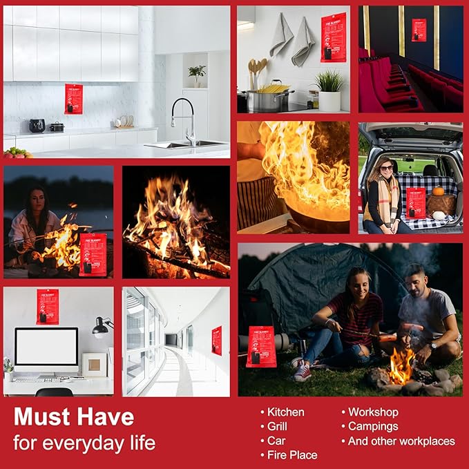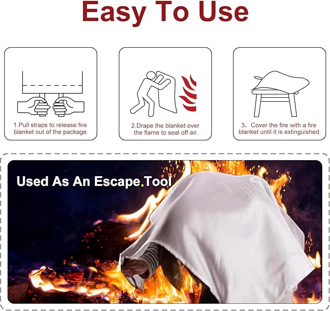 - Easy Operation: Gently pull straps to release the fire extinguisher blanket out of the package, cover slowly flame to seal off air, and quickly and easily cleanly extinguish small fires, ideal for home or kitchen use, requiring no prior training.