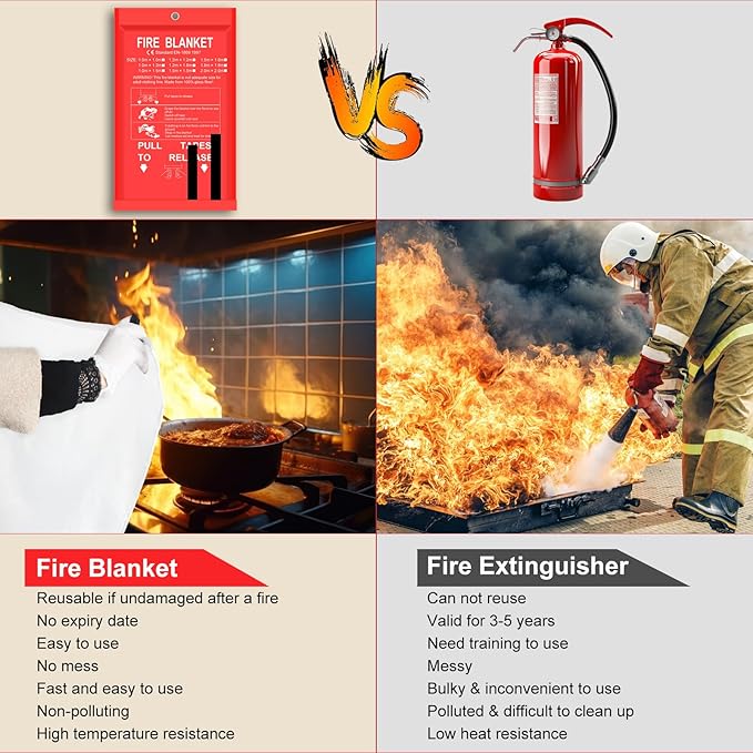 - Lightweight and Leave No Mess: This fire blanket is easy to carry and store, and quickly and easily extinguishes small fires without creating any mess in the kitchen or home. Never expires and there's no need for replacement. Easy to use for anyone, including children and the elderly.