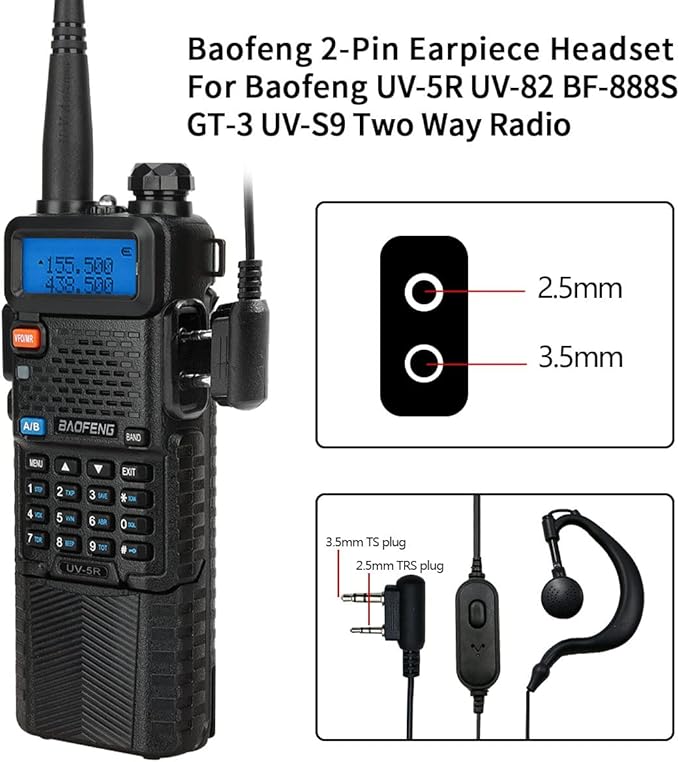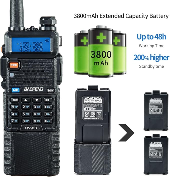 Baofeng UV-5R Ham Radio Long Range UV5R Two Way Radio Dual Band Rechargeable 3800mAh Li-ion Battery High Power Walkie Talkie with Earpiece Full Set for Survival Gear Hiking Hunting,2 Pack