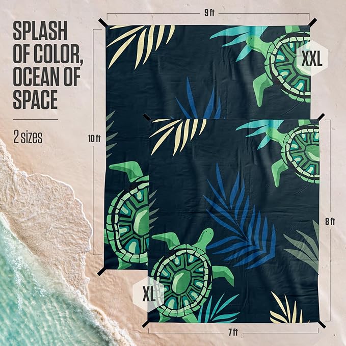 VENTURE 4TH Family-Size Beach Blanket: Sandproof, Waterproof, Lightweight & Compact. Includes Stakes and Carry Bag. 9x10 feet XXL Navy Turtle