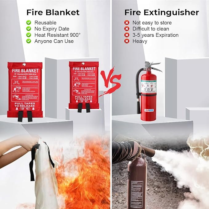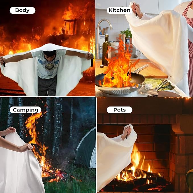 - 🔥【A SURVIVAL FIRE BLANKET FOR HOME】 Made of 100% high-quality flame retardant material, 40*40 inches, Designed as an essential home-safety fire blanket in emergency. Ideal for kitchen, fireplace, grill, BBQ, car, office, backyard, camping and so on.
