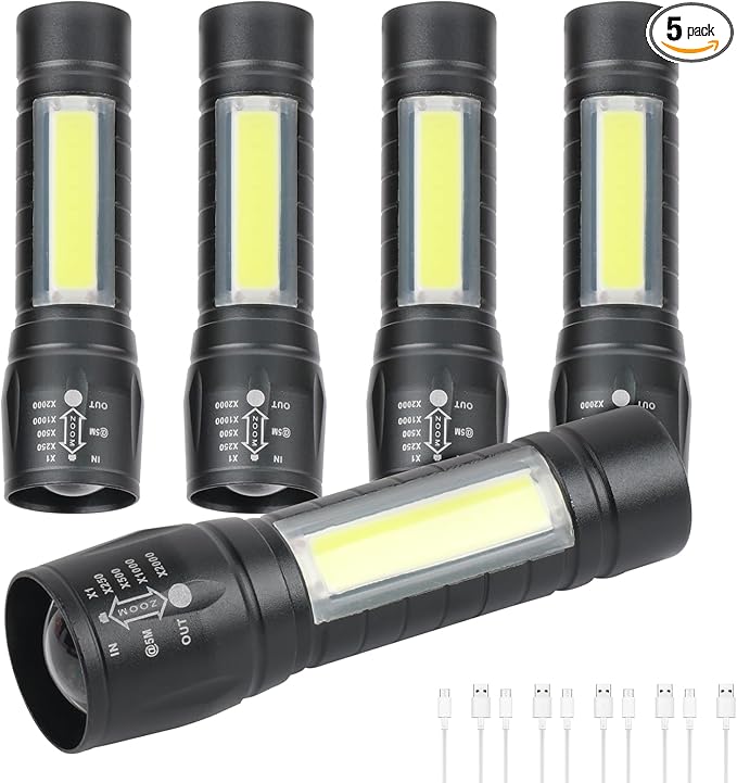 - Quality Material: USB C Rechargeable flashlight is made of quality aluminum alloy material with stable and durable performance; adds the COB side Light, absorbs the design elements of work light, and greatly improves the functional utility of the flashlight.