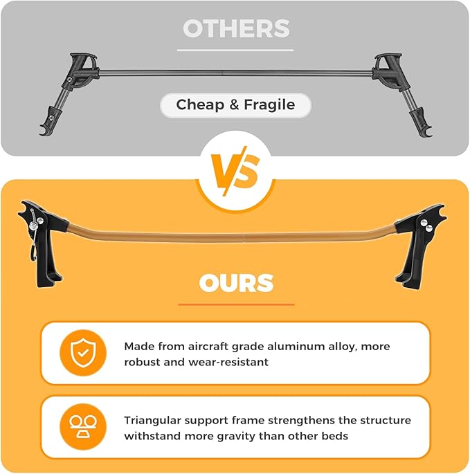 - 【Heavy-Duty & Long-Lasting】Made with 7075 aerospace-grade aluminum and tear-resistant cationic fabric,this heavy duty camping cot supports up to 265lbs.Oversized anti-slip feet add ground stability, while anodized coating protects the frame from rust and corrosion.
