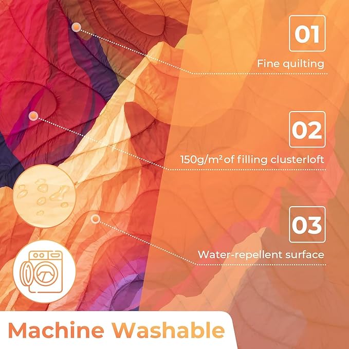 - 【EASY TO CLEAN】: Made with durable 20D polyester plain weave fabric, this camping blanket is easy to clean. Simply toss it in the washing machine and low tumble dry. It's that easy to keep it looking new for your next camping trip.