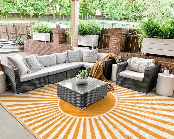 - [Eye-Catching Reversible Mat] Get two different looks in one with our reversible patio rug, extending its lifespan and exquisite patterns with new shades can allowing you to refresh your space with a quick flip