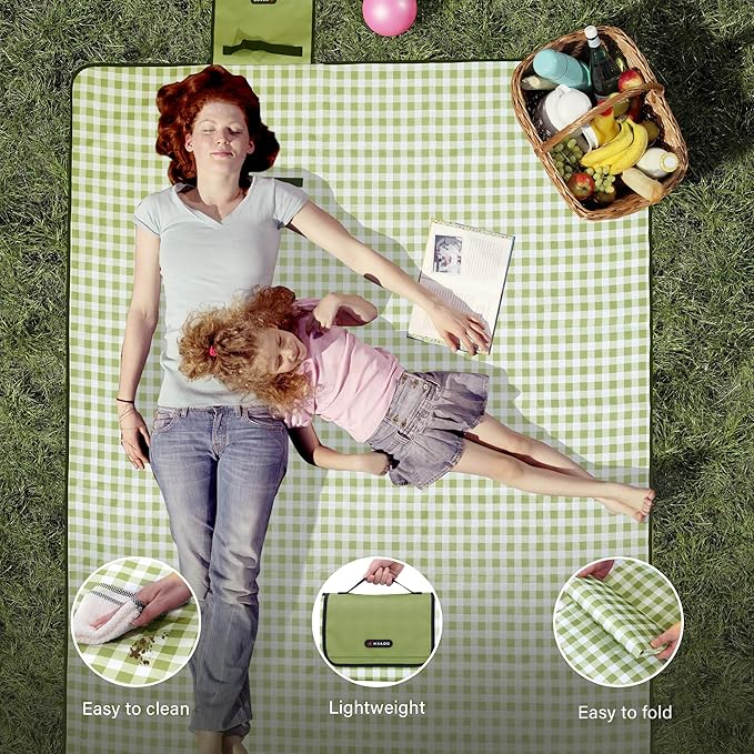Picnic Blanket Outdoor Extra Large Picnic Mat 80"X60" Camping Blanket Beach Blanket Foldable Waterproof Sand Mat Hiking Travel Family Concerts(Green)