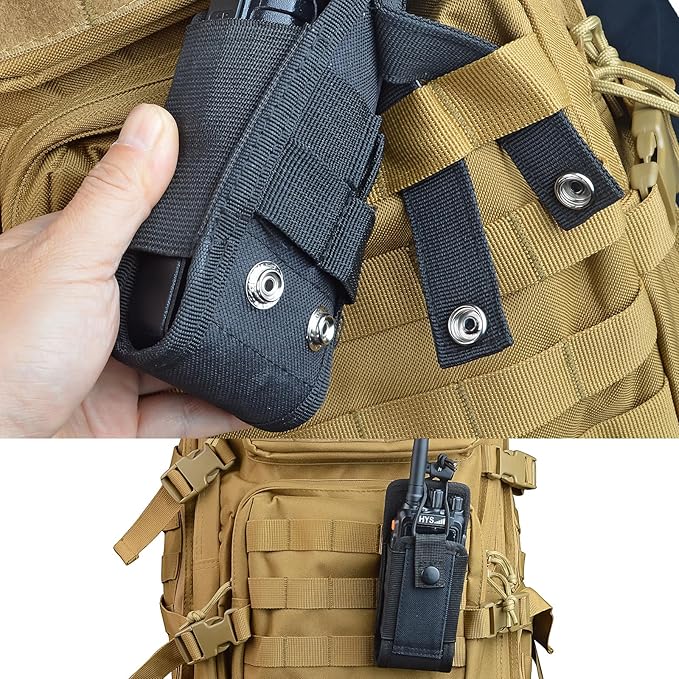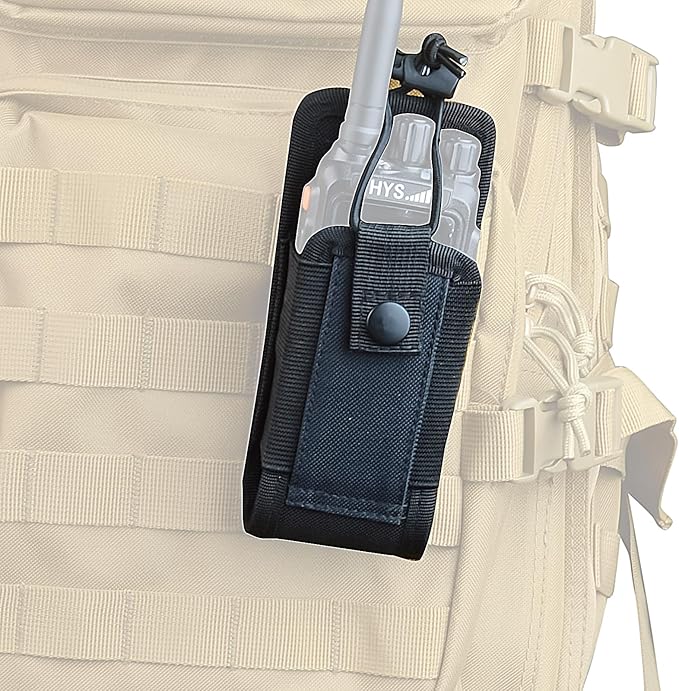 - HYS MOLLE pouch designed to help professionals and tactical enthusiasts organize and access their gear easily. The pouch accommodates a wide range of contents like phones, walkie talkie, two way radio and handheld GPS device. This radio case is built to withstand even the toughest conditions, making it ideal for outdoor adventures, camping trips, and more.