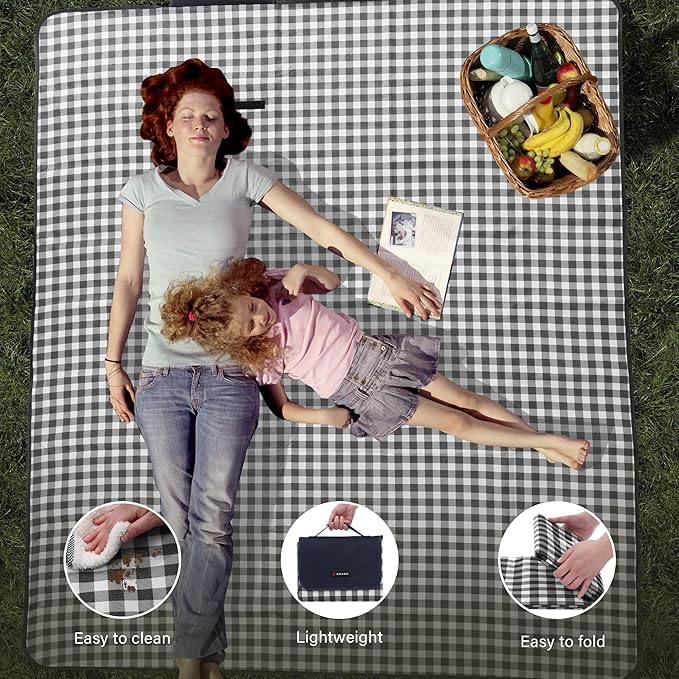 - 【Waterproof & Sandproof & Anti-stain】Because of its waterproof bottom, our large picnic blanket can be completely waterproof and sand free, which can prevent the ground from being wet or the beach from being wet, and protect you from the attack of sand, soil, wet grass, and even dirty campsites.