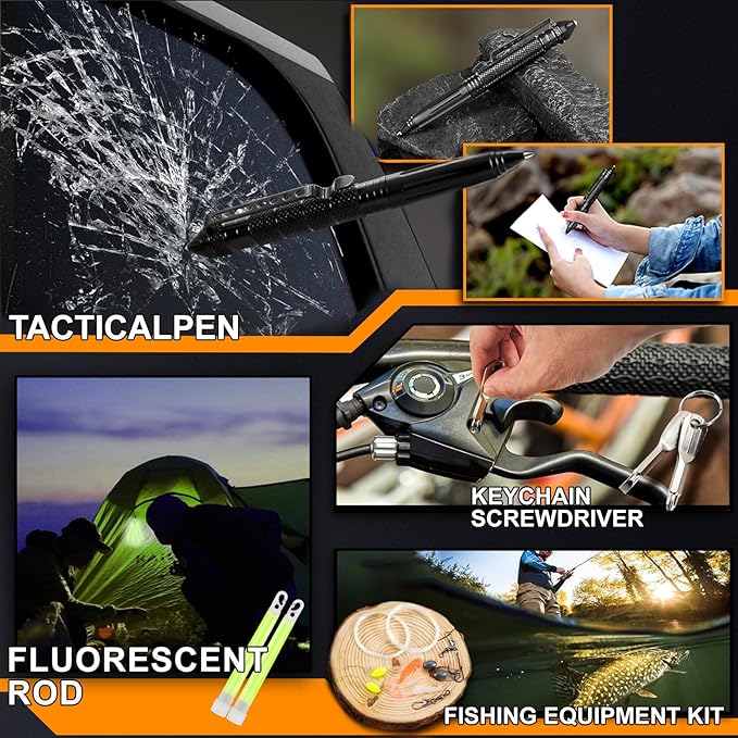 - 【Gifts For Men Who Have Everything】:Are you searching for suitable Christmas stocking stuffers for men? This Survival Kits can solve this problem. It’s a Christmas gifts and a necessary gadget for men who like outdoor survival, exploring, hiking, fishing, camping, backpacking, adventure, etc.