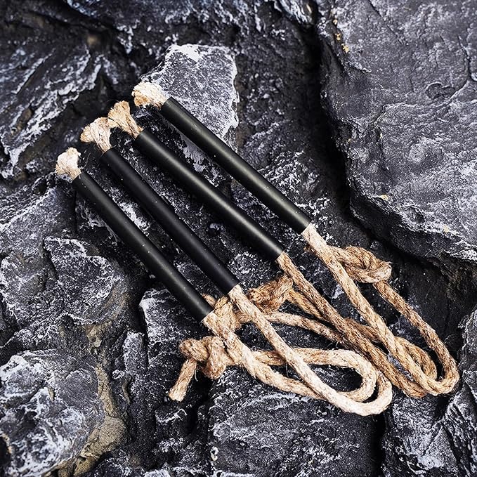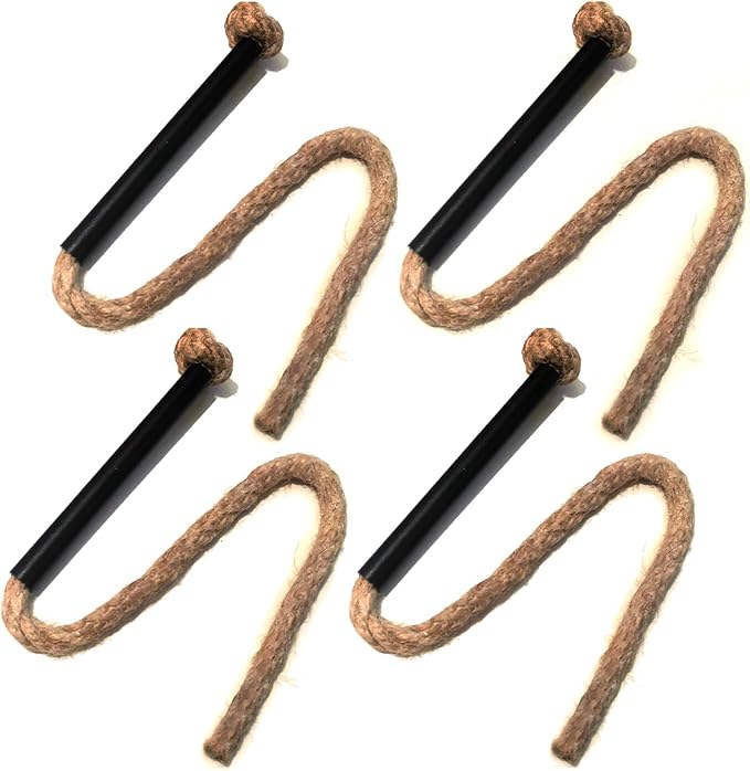 - Longer Burning Time: Our tinder wick rope pack contains 4pcs of tinder, each with 12" length, each tinder will burn consecutively for 60 minutes, saving you the hassle of constantly replenishing your fire source. Just fluff out the end of the rope and get some sparks from a Flint ferro rod. It's like a huge matches stick.