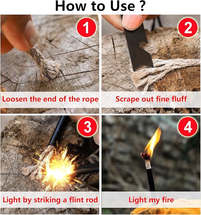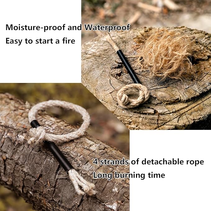 - Lightweight and Portable: The fire starter rope is compact and lightweight for easy storage, perfect for bushcraft, survival, cooking, hiking, camping, outdoor adventures and emergency situations.