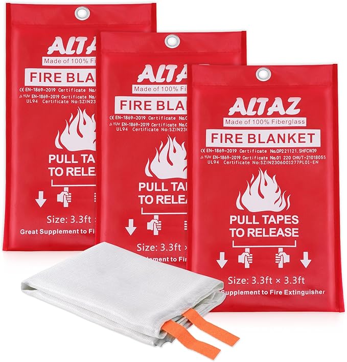 Altaz Fire Blanket Emergency for Home Kitchen - 39.4"x39.4" Flame Suppression Fiberglass Fire Extinguisher for Camping, Grill, Car, Office, Warehouse, Fireplace, Survival, Safety (3 Pack)